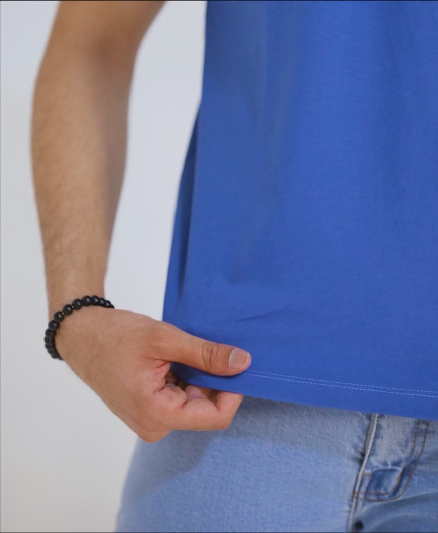 Add bold color and freshness to your casual wardrobe with the Azure Blue Premium Zip Polo by Bold & Bare. Crafted from 100% cotton lycra jersey, it offers a soft, stretchable feel with a self collar and bold front zipper that brings a touch of attitude. Finished with refined stitching and premium detailing, this regular-fit polo delivers all-day comfort with an elevated look. Style it with jeans and sneakers for a clean, masculine look that works anywhere from casual meetups to weekend plans.